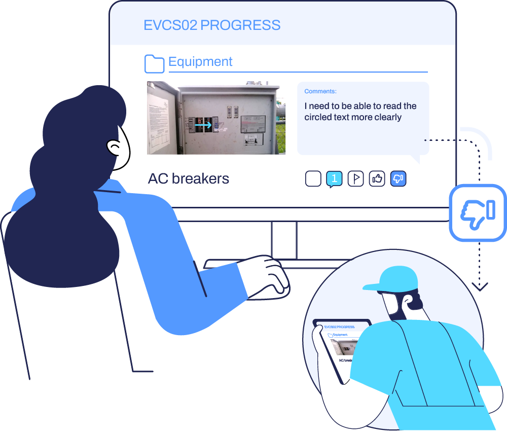 To further enhance communication and clarity, the platform includes tools for text and visual annotation. Users can add notes directly to images or draw attention to specific areas using visual markup tools such as arrows, highlights, or circles. This is particularly useful for highlighting problems or providing follow-up instructions, ensuring that field teams can quickly understand and act on feedback without misinterpretation.